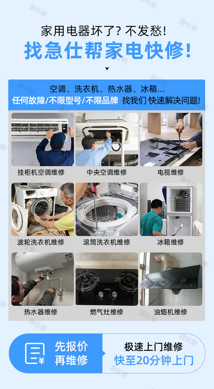 名称:同城家电空调维修冰箱燃气灶洗衣机热水器修理清洗安装上门服务